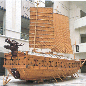 The Turtle ship, also known as Geobukseon (거북선), was a type of large Korean warship that was used intermittently by the Royal Korean Navy during the Joseon Dynasty from the early 15th century up until the 19th century. It was used alongside the standard Korean Panokseon warships in the fight against invading Japanese naval ships. The ship's name derives from its protective shell-like covering. The first references to older, first generation turtle ships, known as Gwiseon (귀선; 龜船), come from 1413 and 1415 records in the Annals of the Joseon Dynasty, which mention a mock battle between a gwiseon and a Japanese warship. However, these early turtle ships soon fell out of use as Korea's naval preparedness decreased during a long period of relative peace.